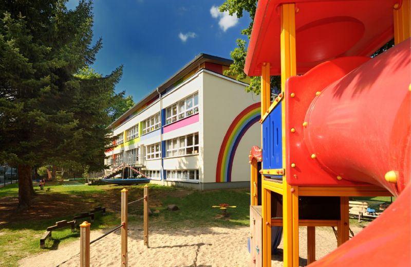 Unsere Kita befindet sich zentrumsnah in einem Villenviertel, gut zu erkennen an unserem Regenbogen, der die Fassade unserer Einrichtung ziert. In der Nähe befindet sich eine Schule, der Hort, das Seniorenzentrum sowie die Tagespflege der AWO, eine Bibliothek, niedergelassene Ärzte und andere öffentliche Einrichtungen. Den historischen Stadtkern mit seinen günstigen Verkehrsanbindungen kann man in ca. 5 Minuten zu Fuß erreichen.